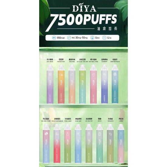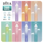 DIYA 7500 Puffs 一次性電子煙,13ml大容量油倉,650mAh可充電電池,15種人氣口味。追求極致便利、價格親民、CP值超高